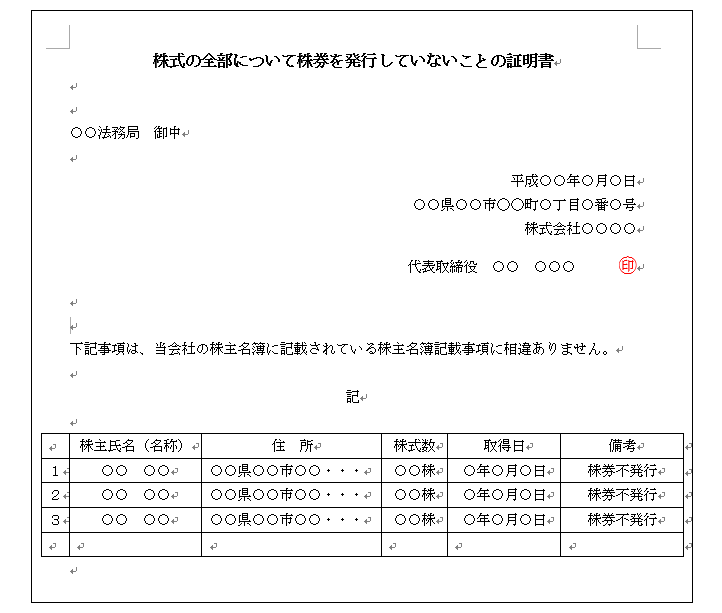 旧商法においては、株式会社は株券を発行するのが原則とされており、株券を発行しない会社は定款に「株券不発行の旨」を定めてそれを登記する必要がありました。